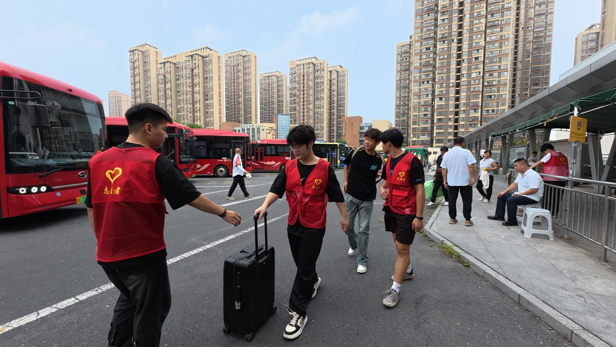 合肥汽车客运西站、合肥火车站、合肥南站、合肥客运中心站成为迎新的第一线。志愿者们统一着装,手举标识牌,耐心为新生指引路线,并安排他们乘坐前往学校的接驳车。校门口,志愿者们主动上前,从新同学和家长手中接过沉重的行李,并引导大家前往报到地点。