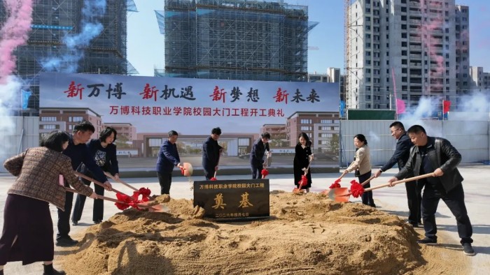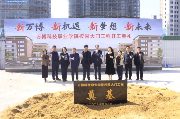 暮春四月,生机勃发。4月7日,万博科技职业学院校园内彩旗招展,洋溢着喜庆热烈的氛围,备受瞩目的校门奠基仪式在此隆重举行。